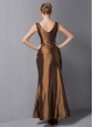 Home >  Special Occasion Dresses >  Mother of the Bride Dresses > Gorgeous Brown Column Mother Of The Bride Dress V-neck Ankle-length Taffeta