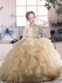 Gorgeous Champagne Ball Gowns Scoop Sleeveless Organza Floor Length Zipper Beading and Ruffles Little Girls Pageant Dress