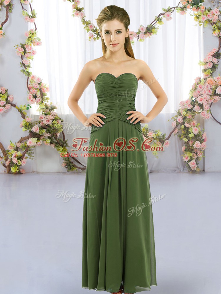 Gorgeous Dark Green Sleeveless Floor Length Ruching Lace Up Vestidos de Damas
