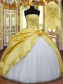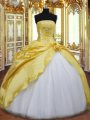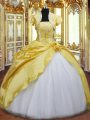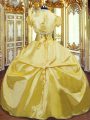 Gorgeous Floor Length Lace Up Ball Gown Prom Dress Gold for Military Ball and Sweet 16 and Quinceanera with Beading and Hand Made Flower