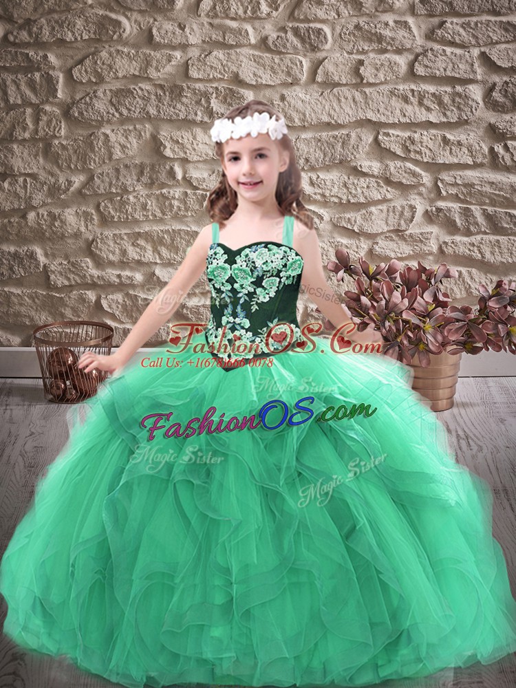 Gorgeous Floor Length Turquoise Girls Pageant Dresses Straps Sleeveless Lace Up