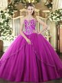 Gorgeous Fuchsia Ball Gowns Beading Quinceanera Gowns Lace Up Tulle Sleeveless