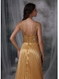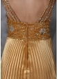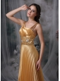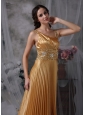 Wonderful prom dress for your prom. This gold prom dress features a asymmetrical straps neckline with a brush train. The heavy beaded waist creating the appearance of a curvier waist and bottom will enhance your femininity nicely. The delicate woven skirt completes the look.