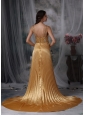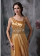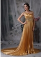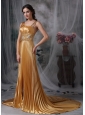 Home >  Evening Dresses > Gorgeous Gold Empire Asymmetrical Evening Dress Elastic Woven Satin Beading Brush Train