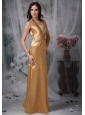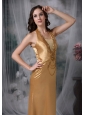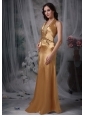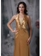 Home >  Evening Dresses > Gorgeous Gold Evening Dress Empire Halter Taffeta Beading Floor-length