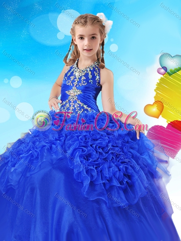 Gorgeous Halter Top Big Puffy Little Girl Pageant Dress with Beading and Ruffles