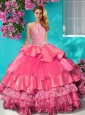 Home >  Quinceanera Dresses >  Unique Quinceanera Dresses > Gorgeous Halter Top Brush Train Quinceanera Dress with Beading and Ruffles Layers