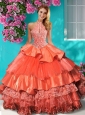 Gorgeous Halter Top Brush Train Quinceanera Dress with Beading and Ruffles Layers