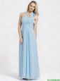 Gorgeous Halter Top Ruffles and Belt Baby Blue Prom Dresses for 2016