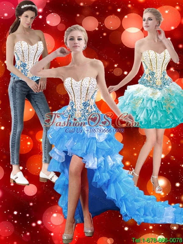 Gorgeous High Low Sweetheart Detachable Prom Dresses with Beading in Multi Color