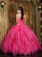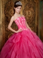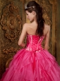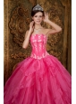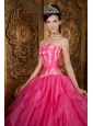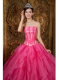 Gorgeous Hot Pink Quinceanera Dress Strapless  Appliques Organza Ball Gown