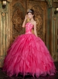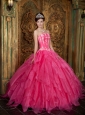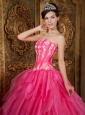 Gorgeous Hot Pink Quinceanera Dress Strapless Appliques Organza Ball Gown