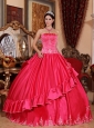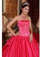 Gorgeous Hot Pink Quinceanera Dress Strapless Satin and Taffeta Embroidery Ball Gown