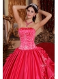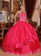 Home >  Quinceanera Dresses >  Perfect Quinceanera Dresses > Gorgeous Hot Pink Quinceanera Dress Strapless Satin and Taffeta Embroidery Ball Gown