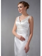 Gorgeous Ivory Column Mother Of The Bride Dress V-neck Ruch and Hand Made Flowers Knee-length Taffeta