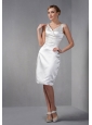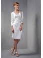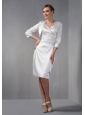Home >  Special Occasion Dresses >  Mother of the Bride Dresses > Gorgeous Ivory Column Mother Of The Bride Dress V-neck Ruch and Hand Made Flowers Knee-length Taffeta