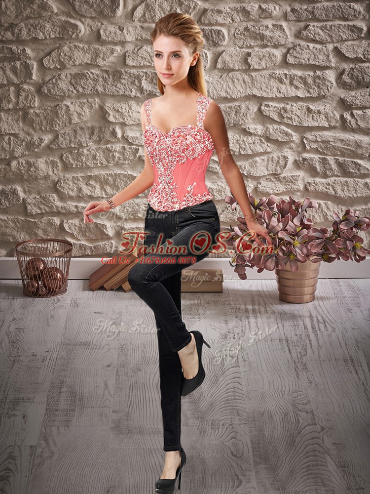 Home >  Quinceanera Dresses >  Detachable Quinceanera Skirts > Gorgeous Lace Up Sweet 16 Dress Watermelon Red for Sweet 16 and Quinceanera with Beading and Ruffled Layers Court Train