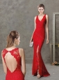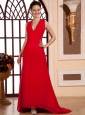 Home >  Prom Dresses >  Modest Prom Dresses > Gorgeous Mermaid V Neck Beaded Prom Dress with Brush Train