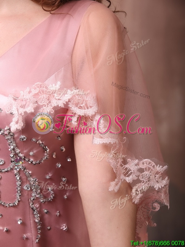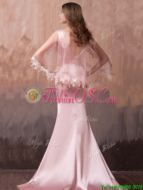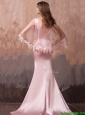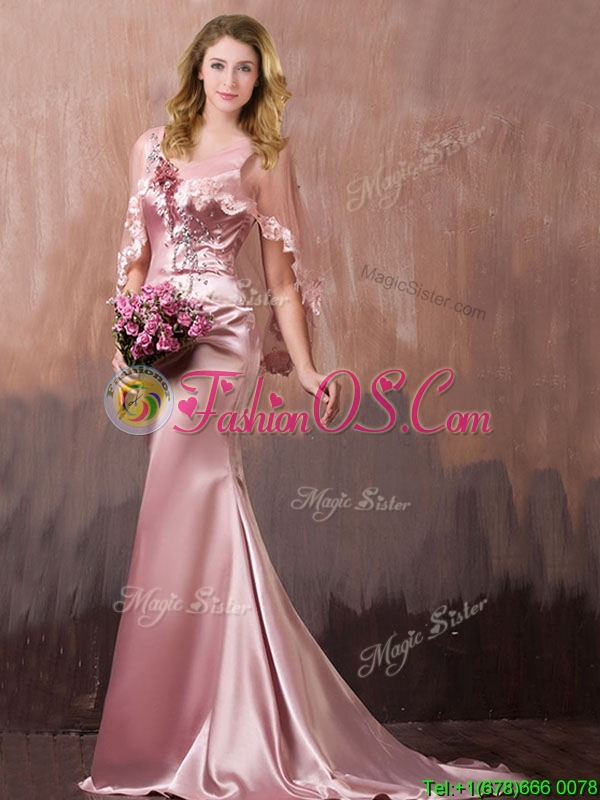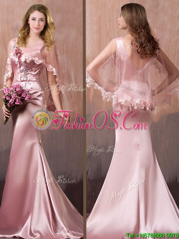 Gorgeous Mermaid V Neck Beaded Prom Dress with Brush Train
