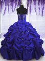 Gorgeous Navy Blue Sleeveless Floor Length Beading and Pick Ups Lace Up Quinceanera Dresses