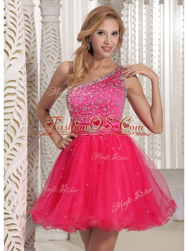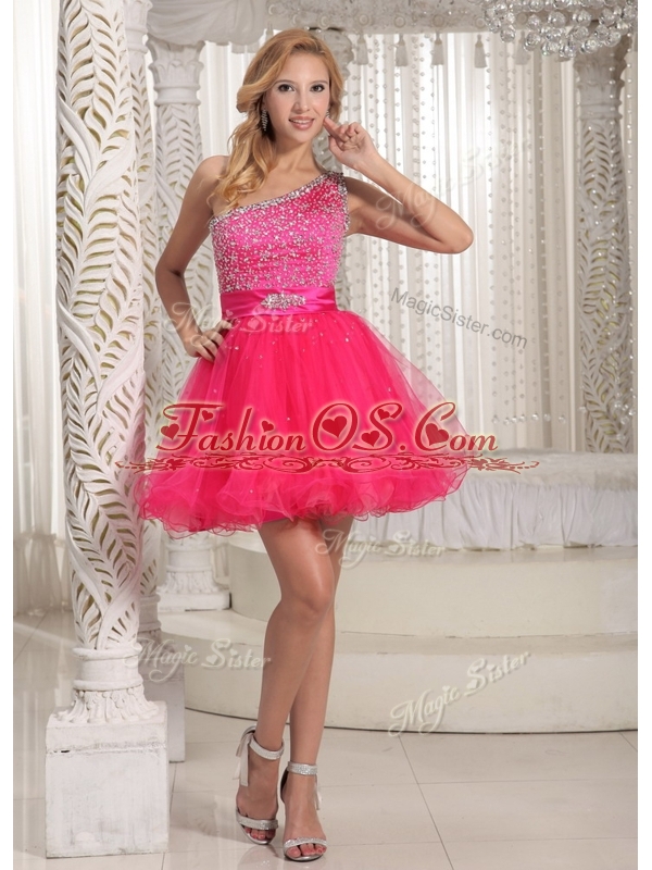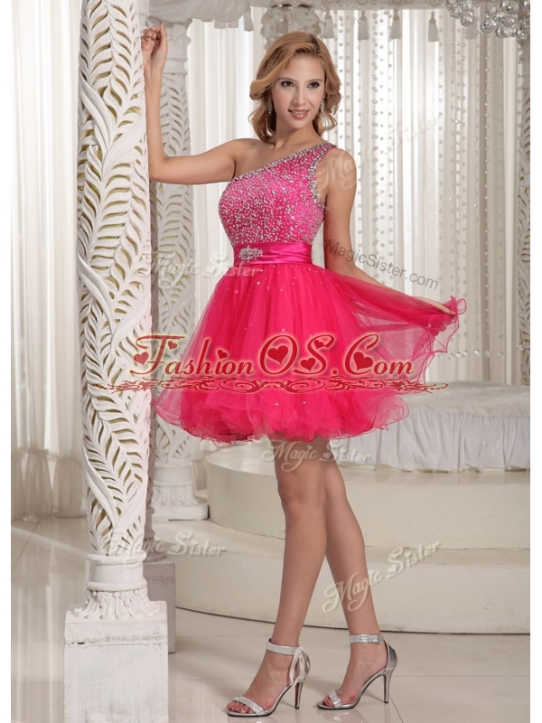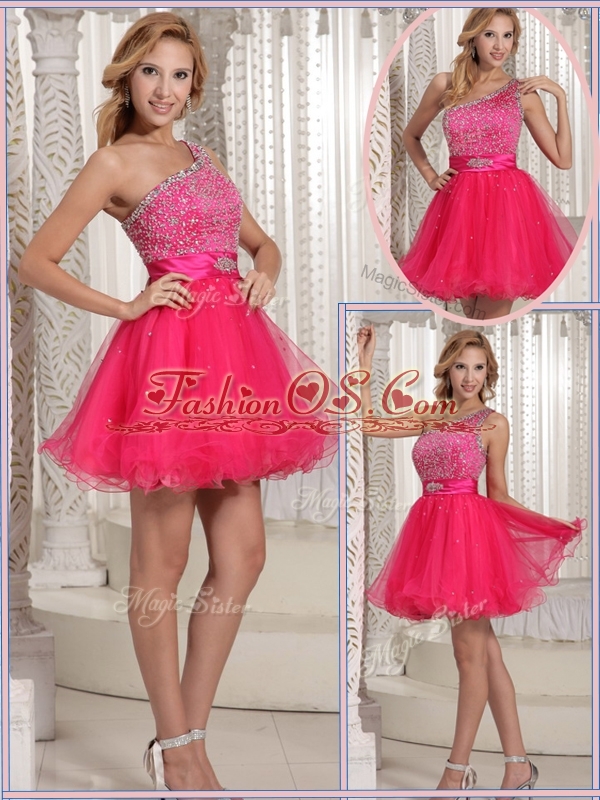 Gorgeous One Shoulder Beading Short Celebrity Dresses for 2016