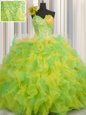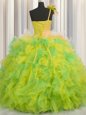 Gorgeous One Shoulder Handcrafted Flower Multi-color Lace Up Ball Gown Prom Dress Beading and Ruffles and Hand Made Flower Sleeveless Floor Length
