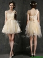 Gorgeous One Shoulder Short Prom Dress with Belt and Hand Made Flowers