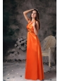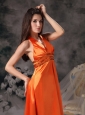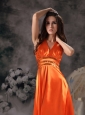 Home >  Evening Dresses > Gorgeous Orange Red Evening Dress Empire Halter Taffeta Beading Floor-length