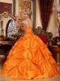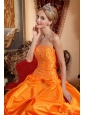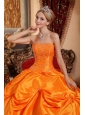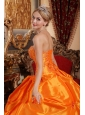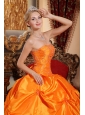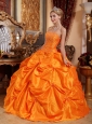 Gorgeous Orange Red Quinceanera Dress Strapless Taffeta Beading Ball Gown