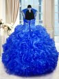 Gorgeous Organza Cap Sleeves Floor Length Sweet 16 Dress and Beading and Ruffles