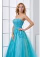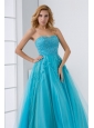 Gorgeous Princess Sweetheart Beading Tulle Aqua Blue Long Lace Up Prom Dress