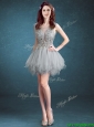 Gorgeous Scoop Appliques and Ruffles Bridesmaid Dresses in Grey
