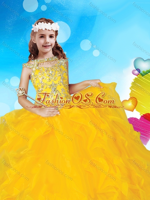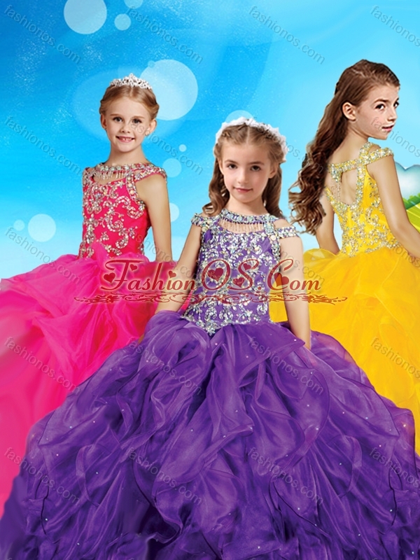 Gorgeous Scoop Cap Sleeves Little Girl Pageant Dress with Beading and Ruffles