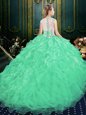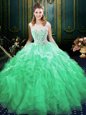Gorgeous Scoop Green Sleeveless Brush Train Appliques and Ruffles Quinceanera Gown