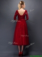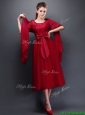 Gorgeous Scoop Half Sleeves Bowknot Mother of the Bride Dresses in Wine Red