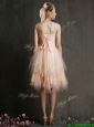 Gorgeous Scoop High Low Bridesmaid Dresses with Appliques and Belt