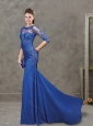 Gorgeous See Through Half Sleeves Evening Dress with Brush Train