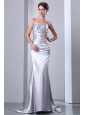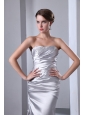 Gorgeous Silver Strapless Elastic Wove Satin Mermaid Prom Dress