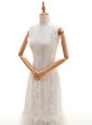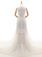 Gorgeous Sleeveless With Train Lace Clasp Handle Bridal Gown with White Brush Train