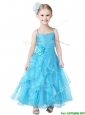 Gorgeous Spaghetti Straps Hand Made Flowers and Ruffles Flower Girl Dress in Organza