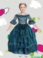 Gorgeous Spaghetti Straps Three Fourth Length Sleeves Little Girl Pageant Dress with Lace and Ruffled Layers