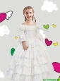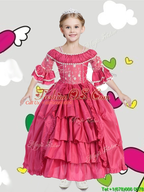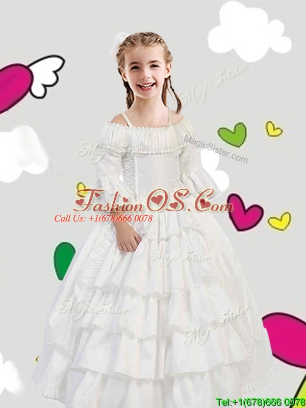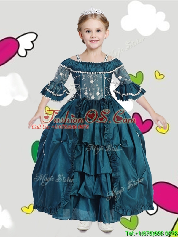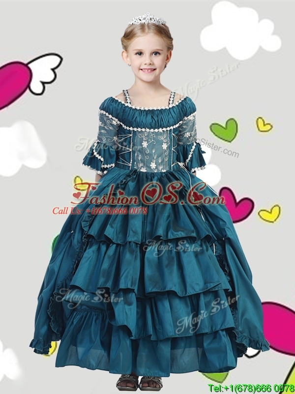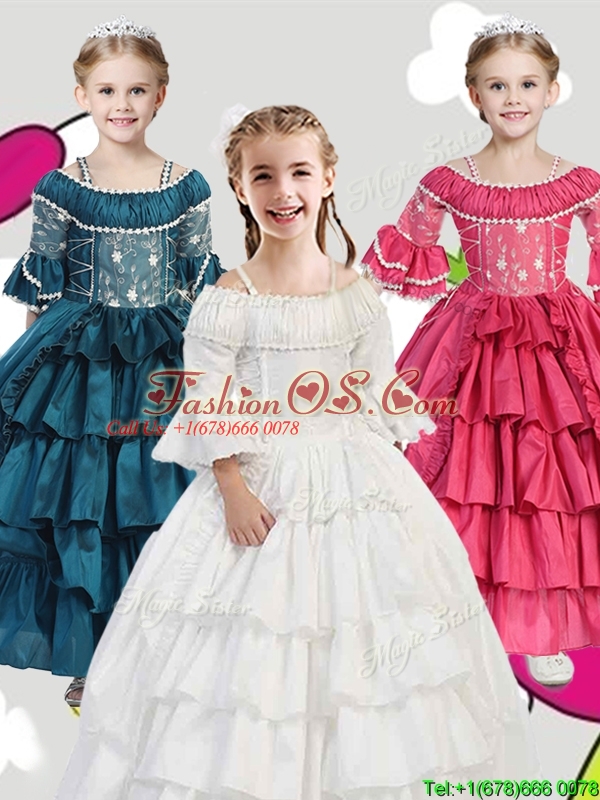 Home >  Special Occasion Dresses >  New Style Little Girl Pageant Dresses > Gorgeous Spaghetti Straps Three Fourth Length Sleeves Little Girl Pageant Dress with Lace and Ruffled Layers
