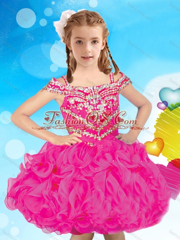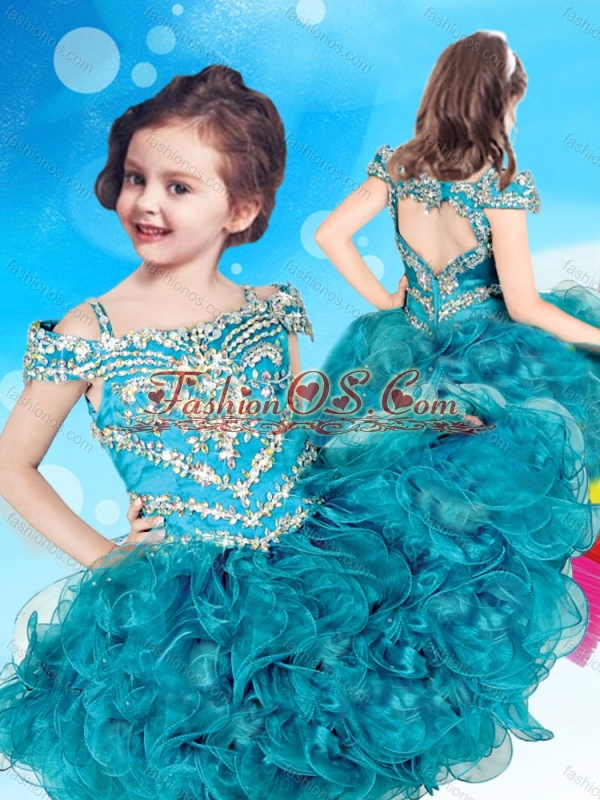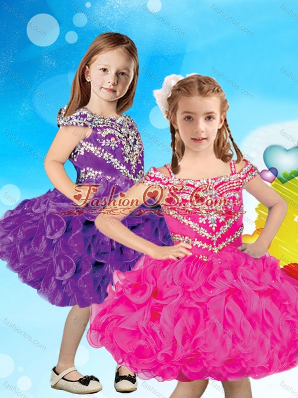 Gorgeous Straps Beaded Cap Sleeves Organza Little Girl Mini Quinceanera Dress