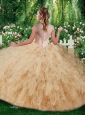 Gorgeous Straps Beading Sweet 16 Gowns in Champange