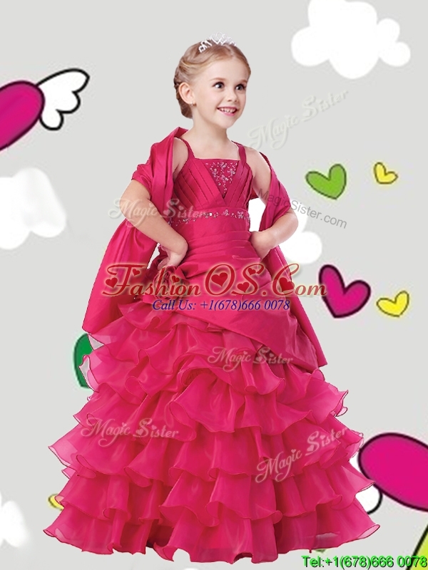 Home >  Special Occasion Dresses >  New Style Little Girl Pageant Dresses > Gorgeous Straps Little Girl Pageant Dress with Ruffled Layers and Hand Made Flowers