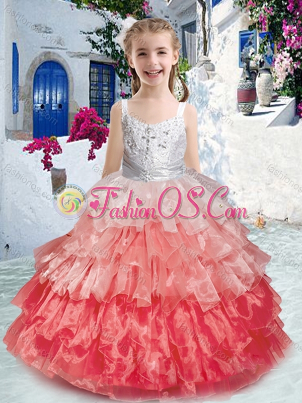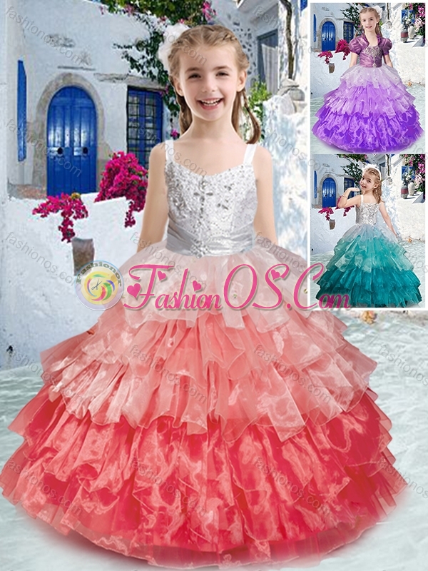 Gorgeous Straps Little Girl Pageant Dresses with Ruffled Layers and Beading
