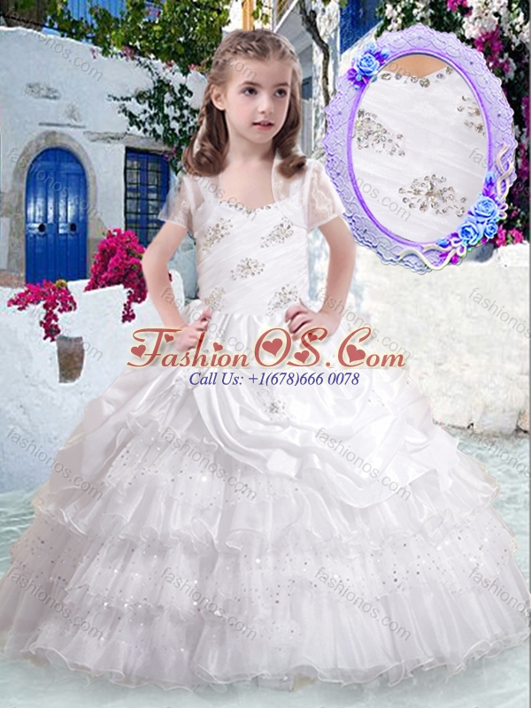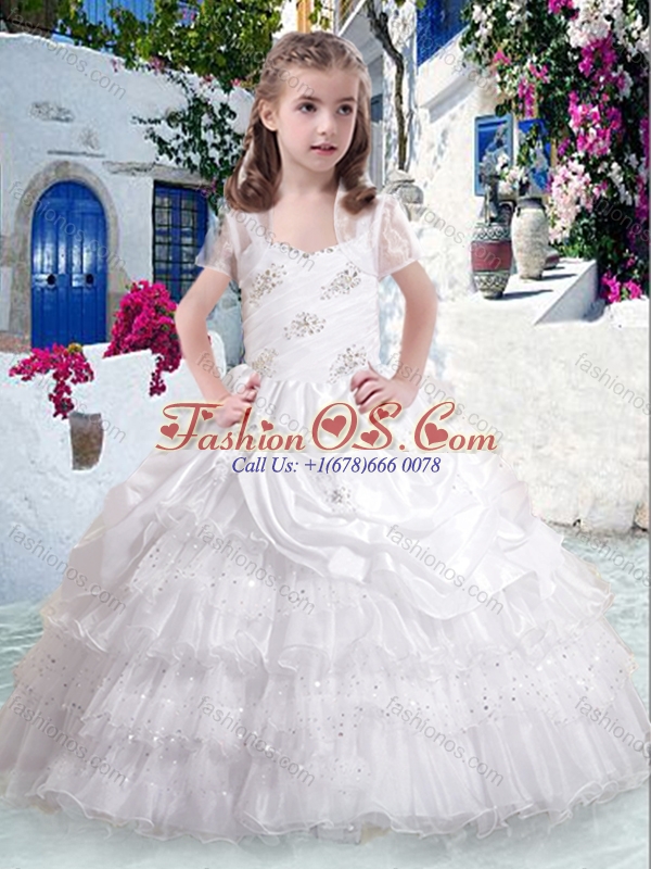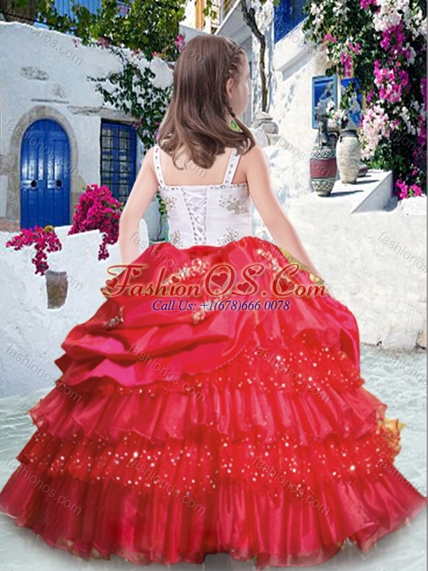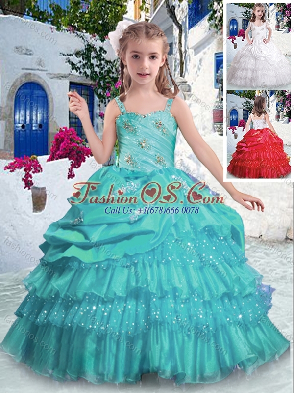 Gorgeous Straps Little Girl Pageant Dresses with Ruffled Layers and Beading