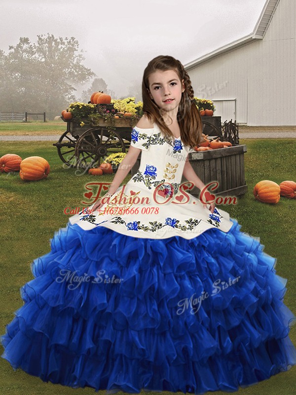 Gorgeous Straps Sleeveless Organza Girls Pageant Dresses Embroidery and Ruffled Layers Lace Up