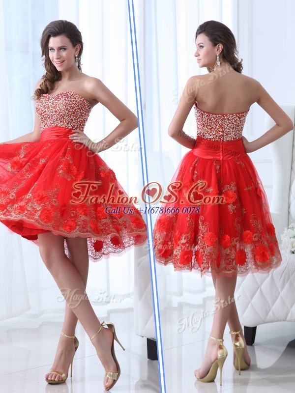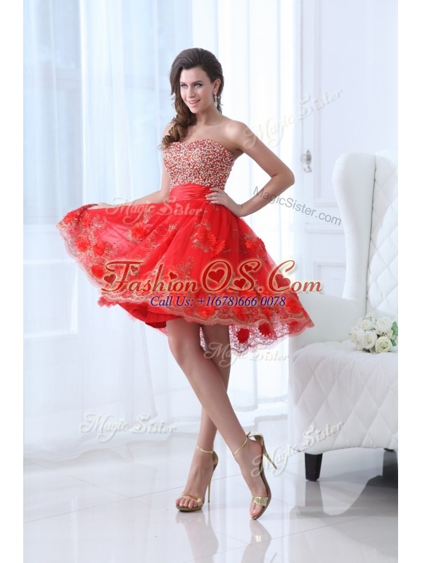 Gorgeous Sweetheart Red Celebrity Dresses with Beading and Appliques