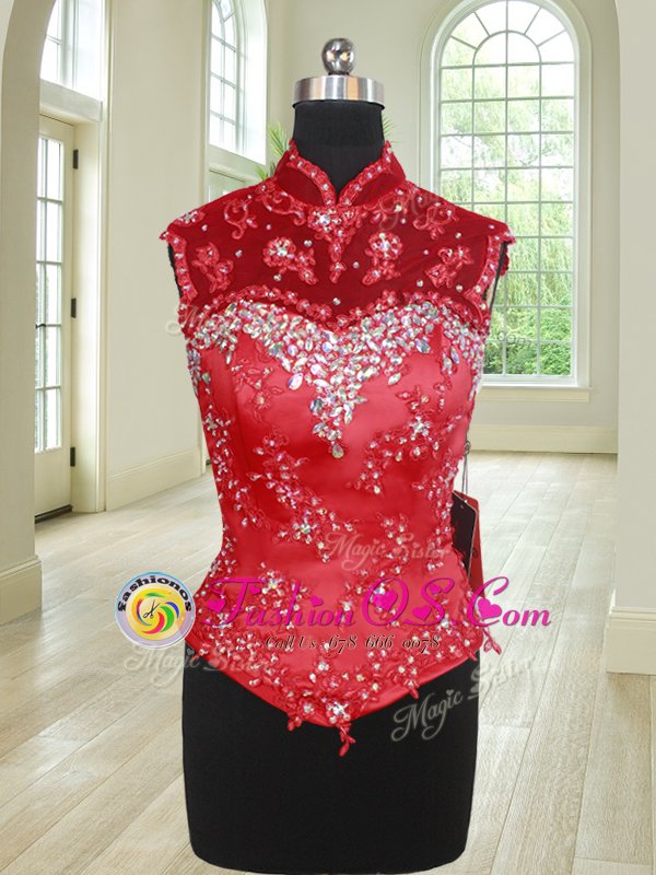 Home >  Quinceanera Dresses >  Detachable Quinceanera Skirts > Gorgeous Three Piece Red High-neck Neckline Beading and Ruffles and Pick Ups Quinceanera Gowns Sleeveless Lace Up